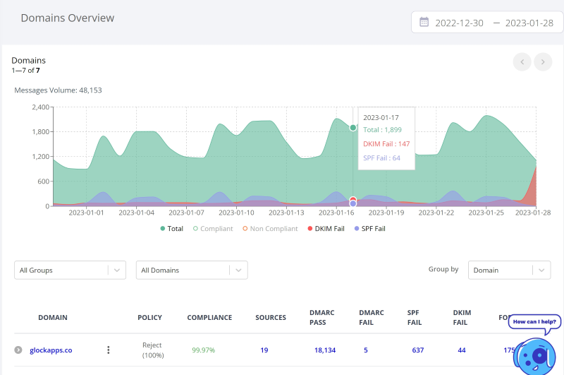 Get a weekly DMARC report which includes maximum visibility of your domain’s sending history.